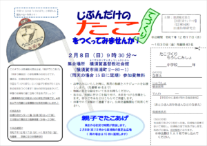 小学生を対象とした凧づくり講習会の参加者を募集します。 募集人員は40人。 応募締め切りは2026年1月30日(金)ですが、先着順です。 詳細は下のチラシをご覧ください。